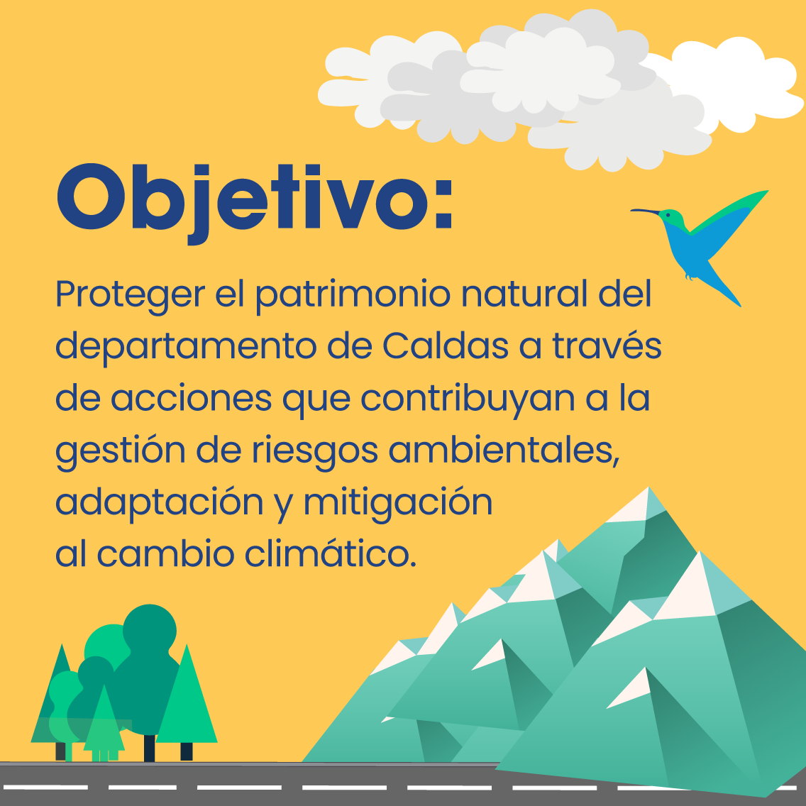 Proteger el patrimonio natural del departamento de Caldas a través de acciones que contribuyan a la gestión de riesgos ambientales, adaptación y mitigación al cambio climático.