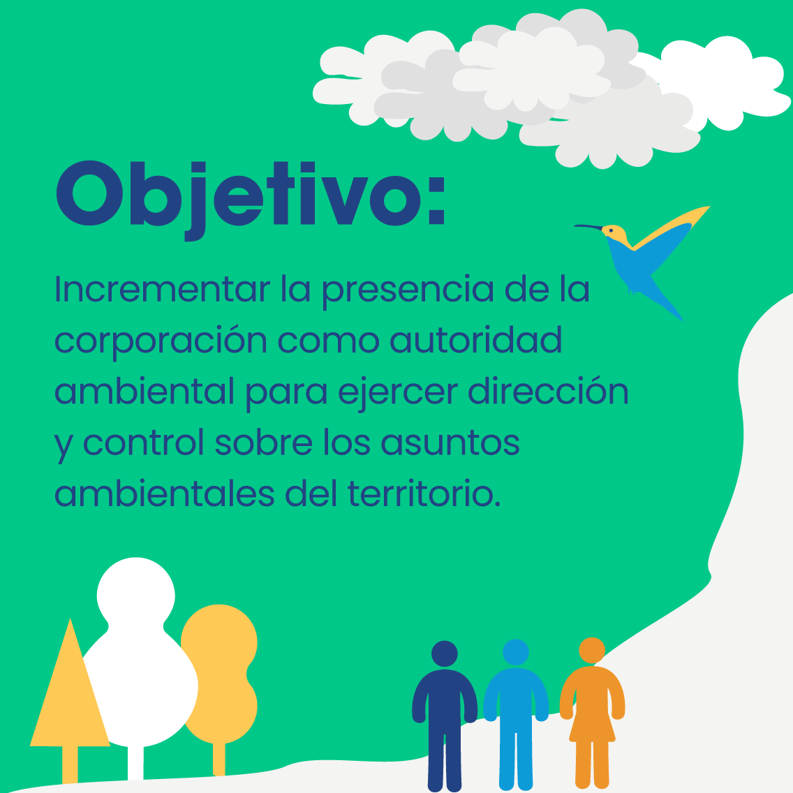 Incrementar la presencia de la corporación como autoridad ambiental para ejercer dirección y control sobre los asuntos ambientales del territorio.